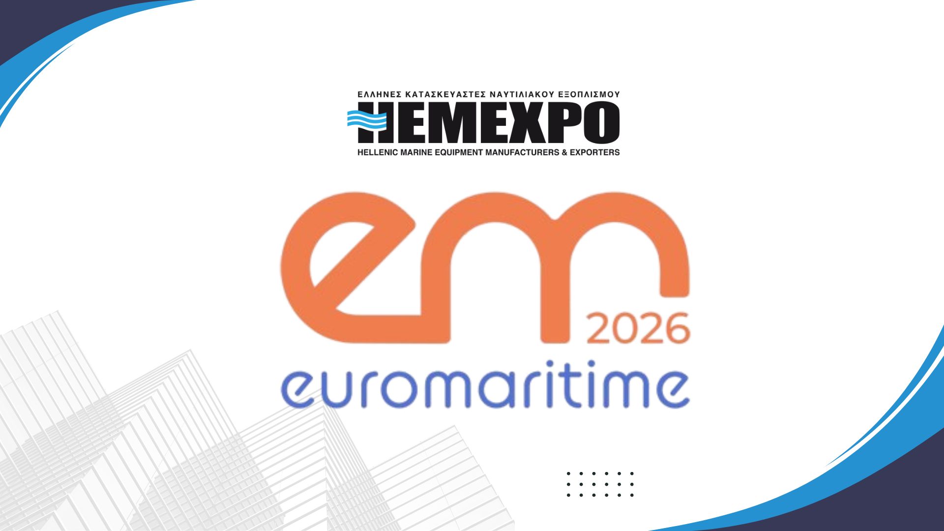 HEMEXPO — Hellenic Marine Equipment Manufacturers & Exporters — is proud to participate in EUROMARITIME 2026, one of Europe’s top five maritime industry events. As a leading association representing Greece’s innovative marine-equipment manufacturers, HEMEXPO joins an exhibition that connects, inspires and guides the global maritime sector toward transformation, modernisation and long-term success.